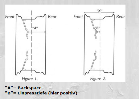 für diejenigen die mit amerikanischen Felgen und deren Bemassungen nicht ganz so vertraut sind... (grimmig wird´s wenn Einpresstiefe (Offset) und Backspace durcheinandergewürfelt werden)